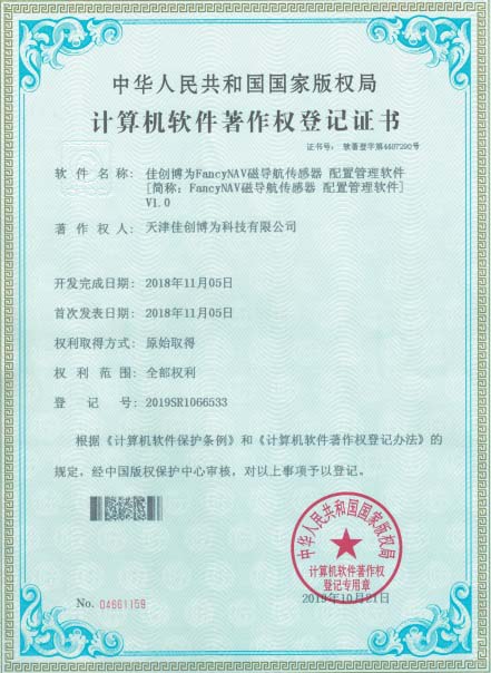 磁導航傳感器配置管理軟件著作權(quán)登記證書